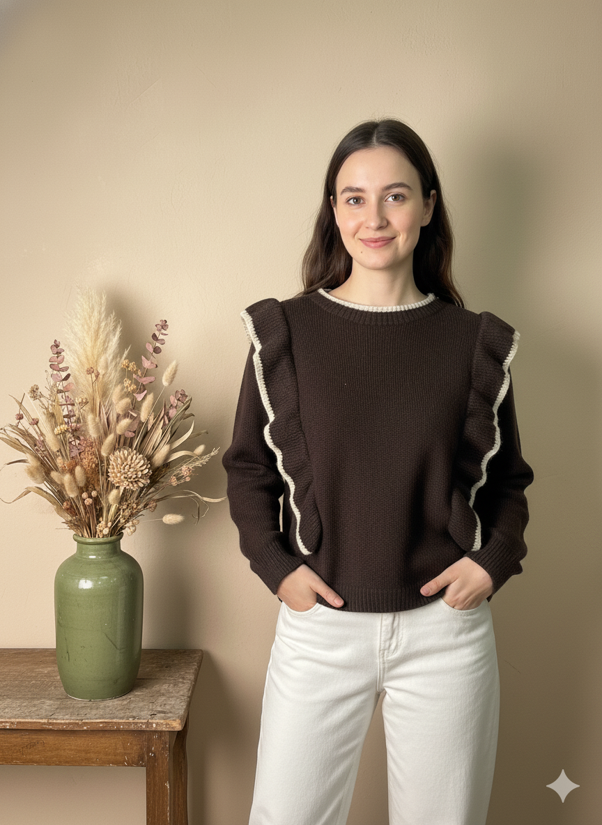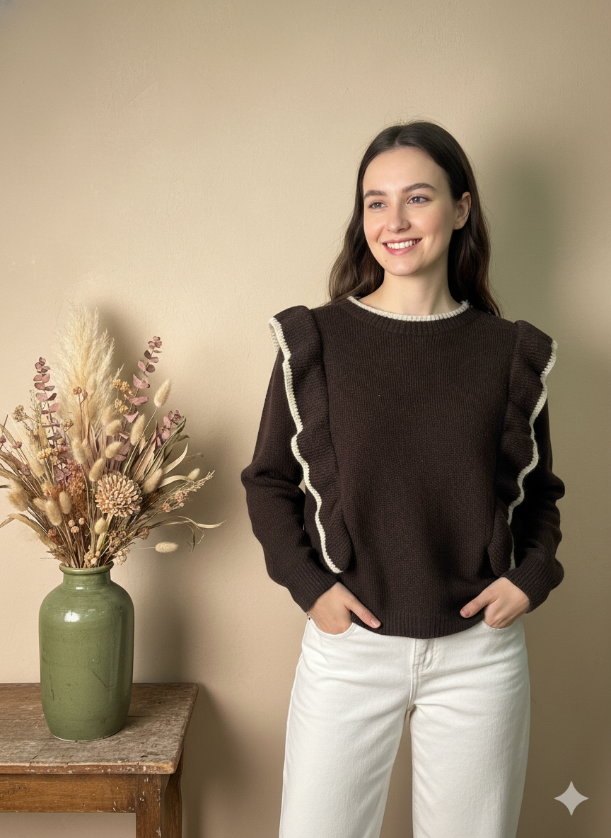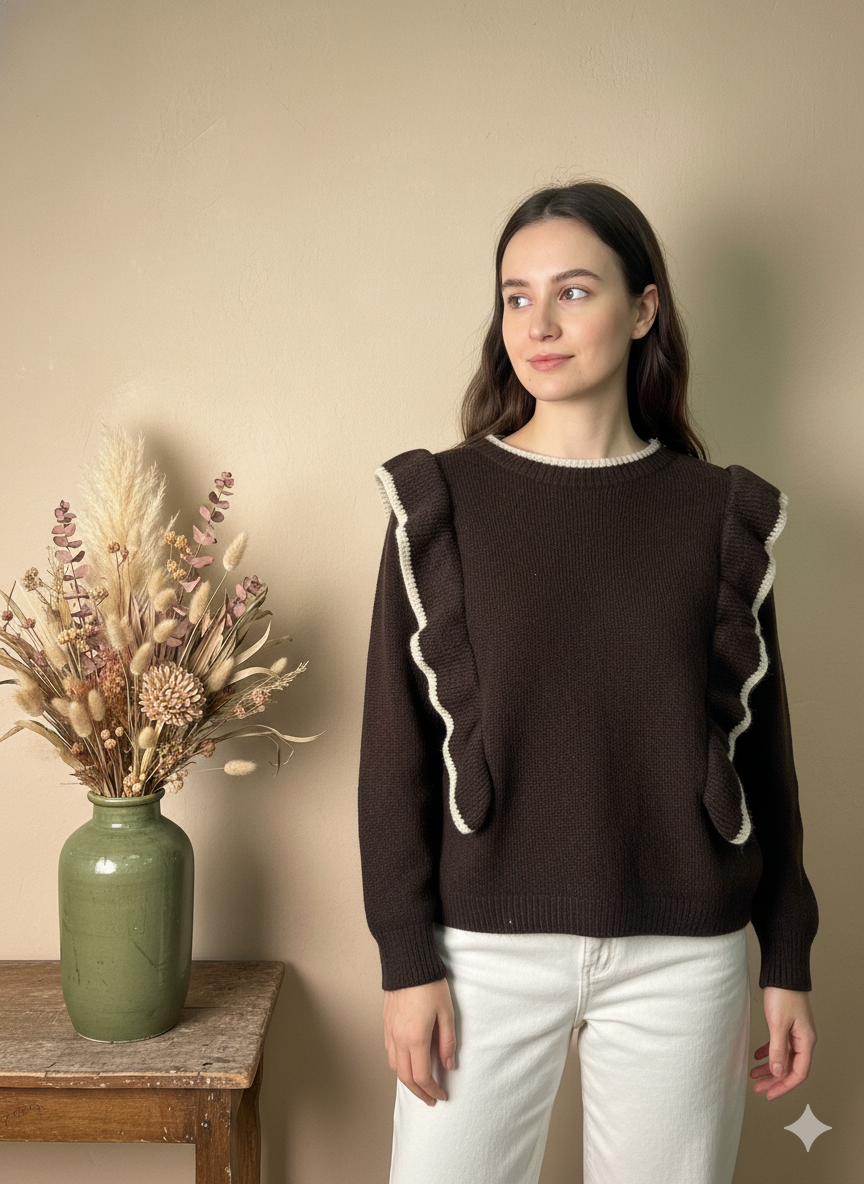 Jersey de Punto Volantes Marrón Chocolate
